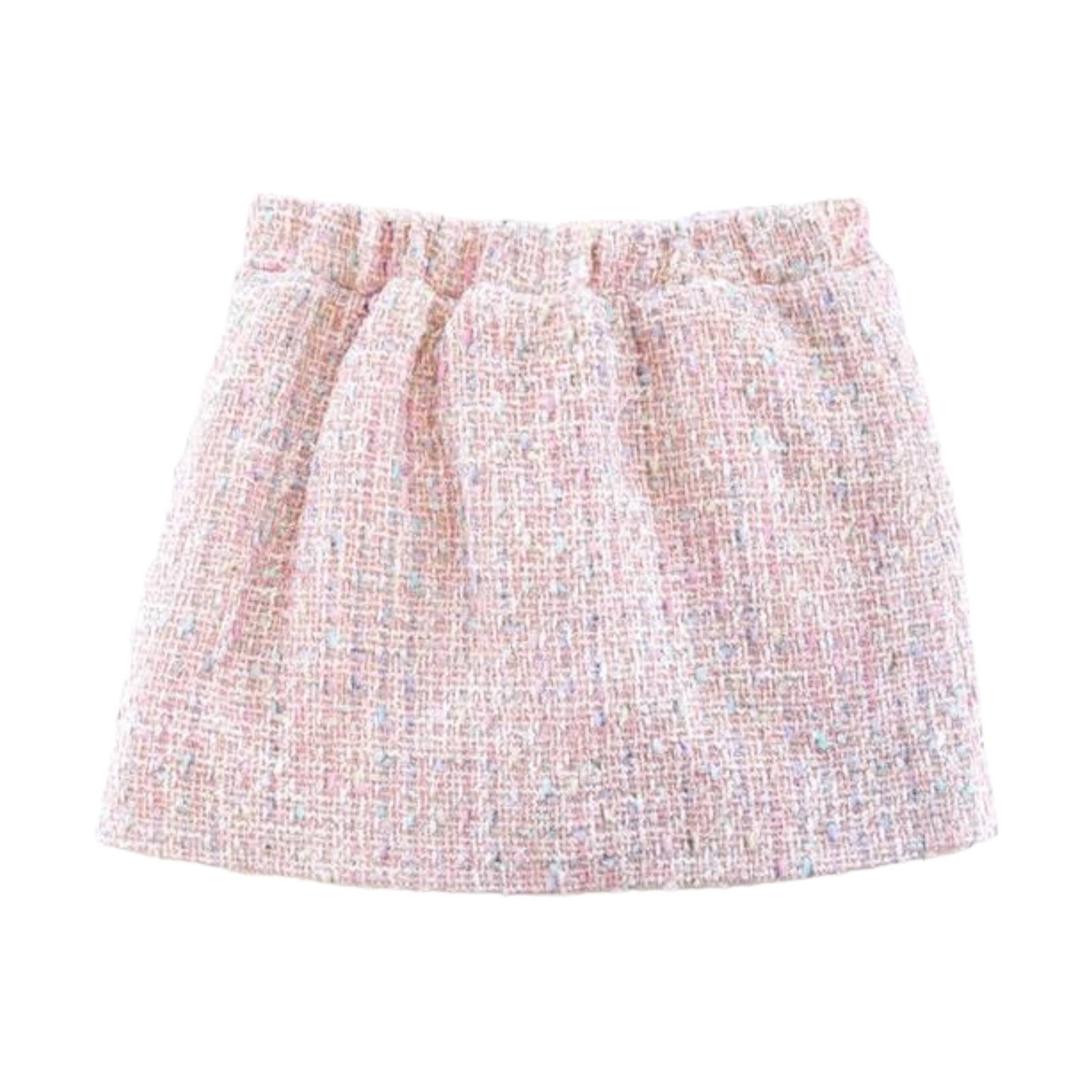 Introducing the Button Front Tweed Skirt, a chic addition to your little fashionista's wardrobe. This stylish skirt, with its unique button front detail, is a must-have item for the season. Crafted in Los Angeles, this piece is a testament to the brand's commitment to high-quality, fashion-forward children's clothing. Perfect for dressing up or down, this tweed skirt offers versatility and style in one