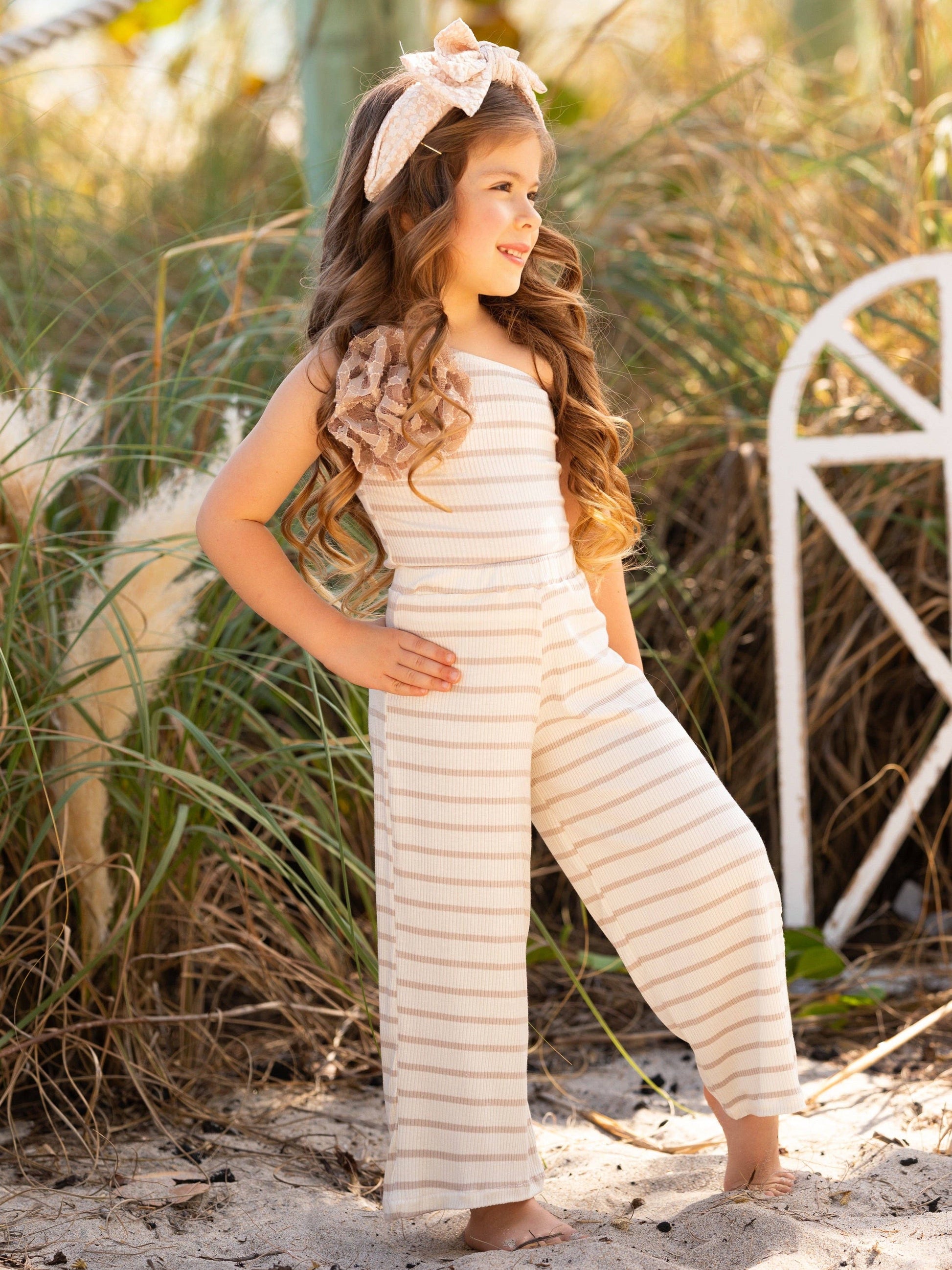 * Keep her effortlessly stylish with the Chic Beige Stripe One Shoulder Palazzo Pants Set, perfect for casual outings or cozy days at home.